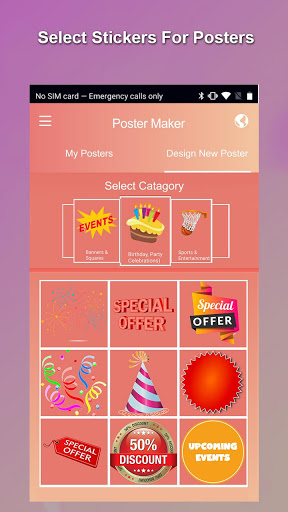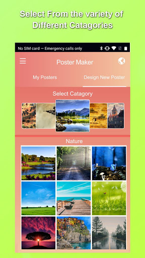 Backgrounds: - More than 10 categories of backgrounds to design your poster easily, categories are Abstract, Adventure & Nature, Birthday, Decoration, Educational, Festivals, Flowers, Love, Musical, Pattern, Sports, Textures, Vector, Woody and Women.