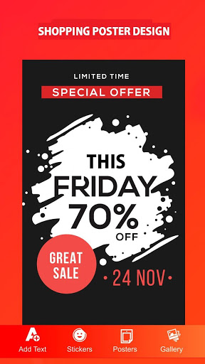 In fast and easy way by using our application you can save your time by creating your promotional poster, social media ad poster, cover for your shop, restaurant, poster and flyer for your business, poster for your event and sale/offer.