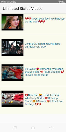 في هذا التطبيق، تقوم Cak بتنزيل ومشاركة مقاطع الفيديو الخاصة بحالة 30 ثانية بسهولة.هناك كل أنواع مقاطع الفيديو الخاصة بالحالة مثل حالة الحب حالة مضحكة الحالة الرومانسية وجميع أنواع الفيديو الأخرى التي يمكنك مشاهدة معاينة الفيديو ويمكنها حفظها ومشاركتها.