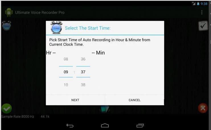 * التطبيق بالكشف عن الحد الأدنى للمعدل العينة تلقائيا بحيث يمكنك انقاذ الكثير من الذاكرة من بطاقة الذاكرة الرقمية المؤمنة الخاص بك، ولكن إذا كنت تريد تسجيل في ذات جودة عالية يمكنك القيام بذلك.