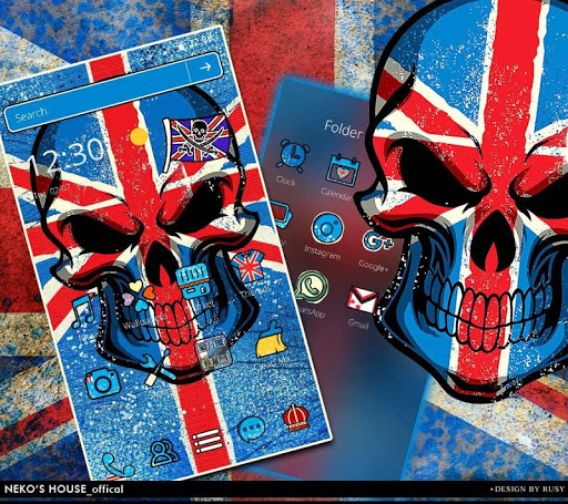 -😍This theme is valid for most Android models. Free Union Jack Flag Skull Theme designed for Launcher users technically. Amazing cool 3D transition effects and technology will let you hardly tear yourself away from it.