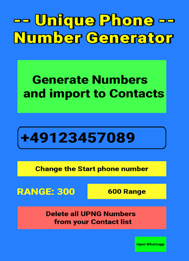 قم بإنشاء عدد كبير من أرقام الهواتف المحمولة بنقرة واحدة وترى، على سبيل المثال، جهات اتصال WhatsApp الجديدة.