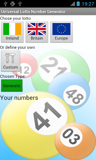 Choose from Ireland, Britain, EuroMillions or use the Custom Lotto tool to generate numbers for other lotteries of your choice.