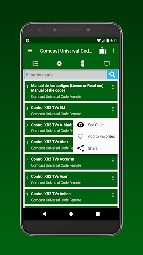 The codes of the remote controller of your Comcast Universal this app allows you to quickly select thousands of codes from TV manufacturers so that you can configure your control or (Control) for television. Code of universal controllers of