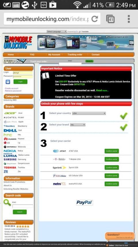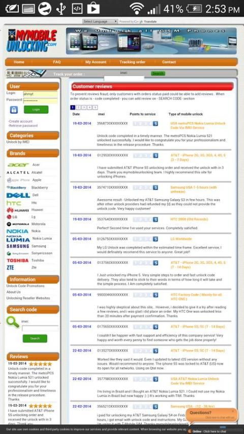 مع التطبيق إفتح هاتفي النقال أو http://mymobileunlocking.com على شبكة الإنترنت، يمكنك: