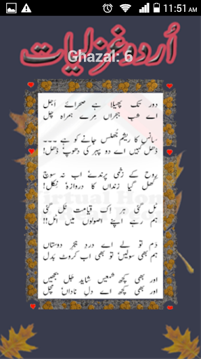 200 Hundred Plus Ghazal of urdu poets . This app contains a lot of urdu ghazal. which can be shared easily with friends.