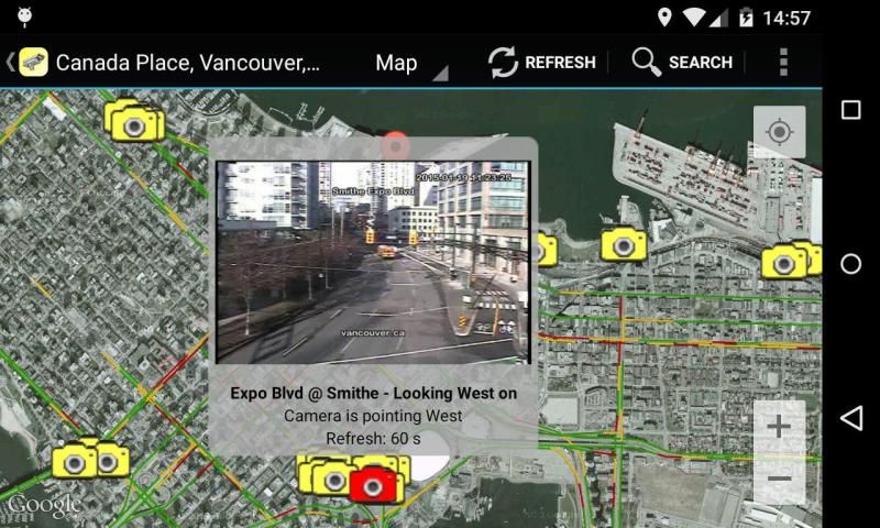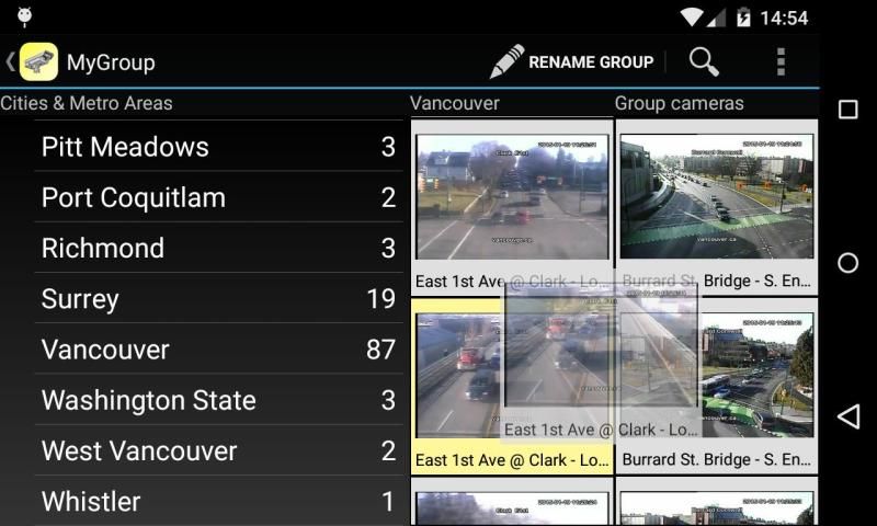 صور الكاميرا الحية حركة المرور من المواقع في منطقة فانكوفر الكبرى.