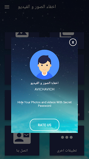 التطبيق الوحيد الذي سوف تحتاج إلى إخفاء الصور ومقاطع الفيديو على الهاتف الخاص بك. الجميع في الوقت الحاضر تشعر بالقلق إزاء أمن وخصوصية الصور وأشرطة الفيديو الخاصة بهم. في بعض الأحيان تحتاج إلى إخفاء الصور على هاتفك من أشخاص آخرين قد تستخدمه. تأمين الصور الخاصة بك باستخدام التطبيق برنامج اخفاء الصور والفيديوهات برقم سري. الآن ليس من الصعب الحصول على أشرطة الفيديو الخاصة بك والصور من المتلصصين. لا أحد لديه حق الوصول إلى خزانة معرض الصور الخاص بك دون إذنك.