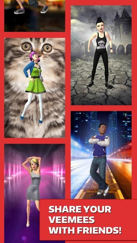 Veemee الخاص بك هو تقريبا كنت - شخصية افتراضية 3D الذي يعيش على جهاز المحمول الخاص بك - صممه لك. إنشاء وتخصيص الشخصيات 3D رهيبة من الأصدقاء والعائلة وأحبائك أو أي شخص تريد مع Veemee الخالق التطبيقات. مرة كنت سعيدا مع خلقك، على غرار عليها في متجر لدينا مع أحدث صيحات الموضة والاكسسوارات الظاهري بما في ذلك العلامات التجارية في العالم الحقيقي. هناك الملايين من تركيبات للاختيار من بينها!