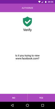 The plugin will prompt a authorisation screen on your linked mobile device when trying to view website added to verify list.