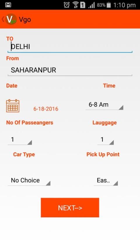 وقد عرض تطبيقات الجوال VGO سيارة أجرة النقل لمسافات بعيدة في أكثر من 25 مدينة في جميع انحاء دلهي المجلس الوطني للمقاومة. هو أسرع وسيلة إلى ما قبل حجز سيارة أجرة الحق على الهاتف الذكي الخاص بك، قبل 24 ساعة من انطلاق الخاصة بك بالضبط وقت السفر.