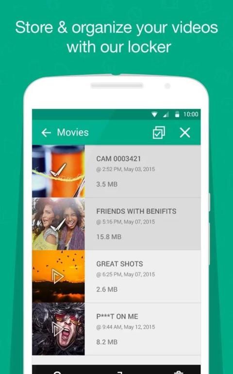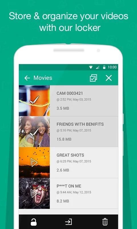 Video Locker lets you organize and keep your private videos behind a secure PIN with fast encryption and password recovery.Video Locker ensures that family and friends who share your phone don't snoop through your private videos while using it to make a call or play a game. Keep your device and its files and enjoy privacy the way it was meant to be.