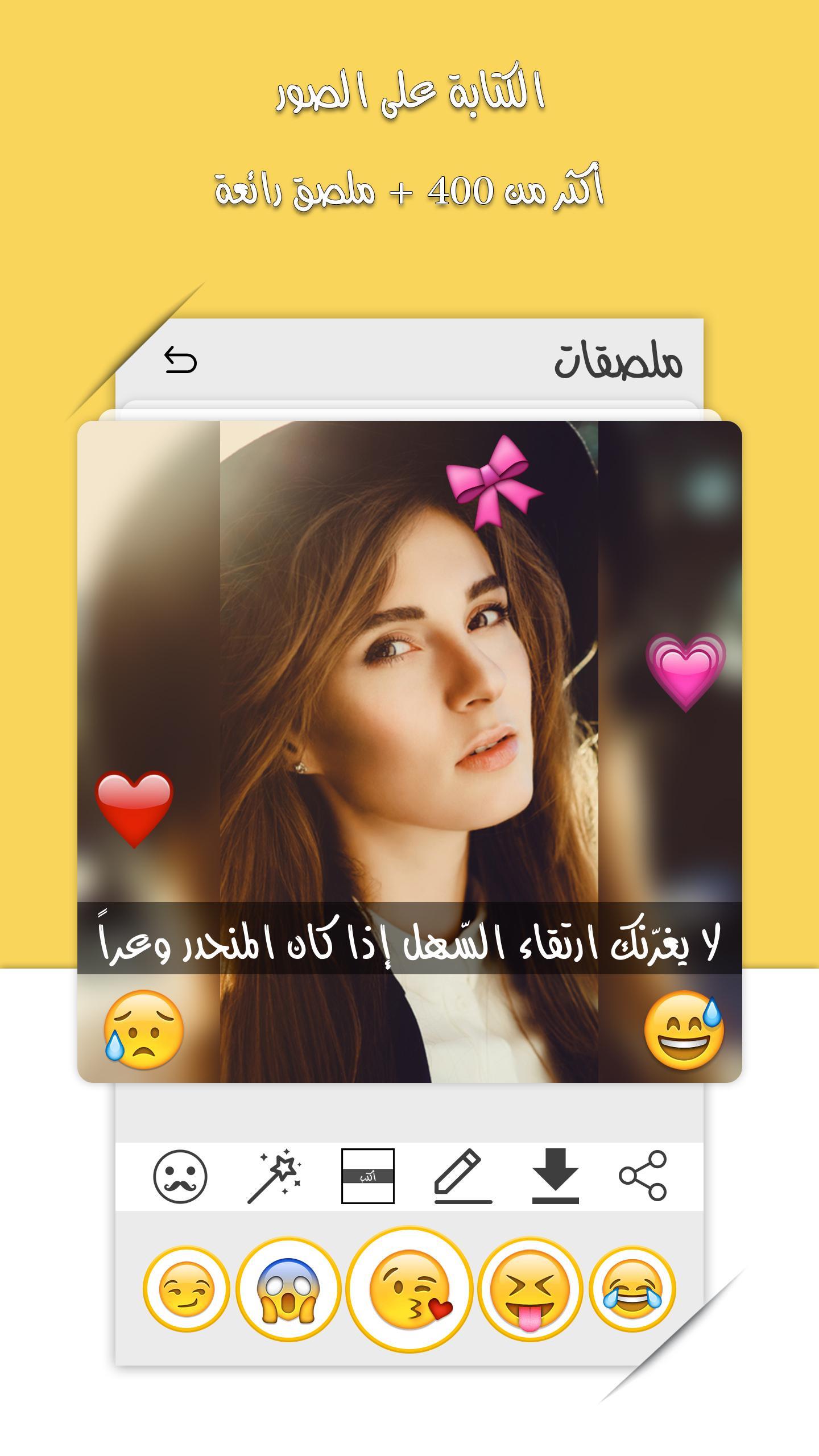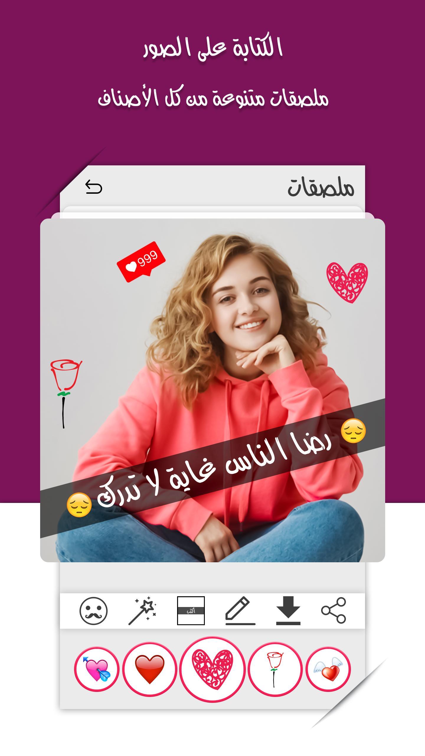 ♥- برنامج الكتابه على الصور يحتوى على مجموعة ضخمه من الملصقات المتنوعه التي تناسب جميع المناسبات