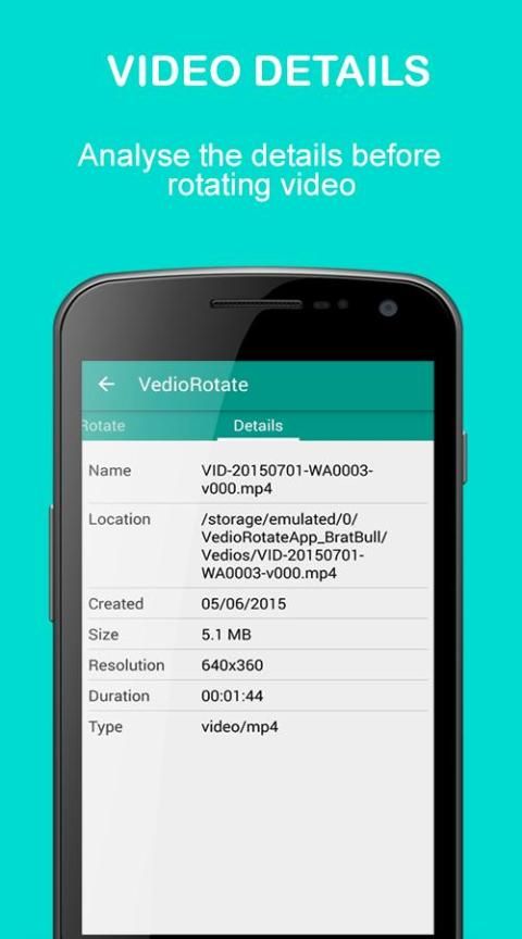 فيديو تدوير يحل مشكلة الهاتف يكتشف (أو تسجيل) التوجه بشكل غير صحيح عند تصوير الفيديو، ويسمح لك لتدوير الفيديو بشكل صحيح. فيديو تدوير متوافق مع معظم MPEG-4 (MP4. & 3gp .. االستوديو) شكل ملفات.