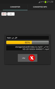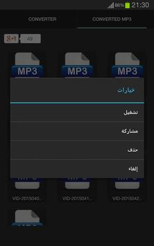 بإستخدام تطبيق تحويل الفيديو الى صوت MP3 اصبح بإمكانك الان تحويل الفيديوهات الى صوت فقط بسهولة من خلال اختيار الفيديو المراد تحويلة والضغط على زر التحويل, ويمكنك ايضاً استعراض الملفات التي قمت بتحويلها سابقا والتحكم بها كيفما تشاء!