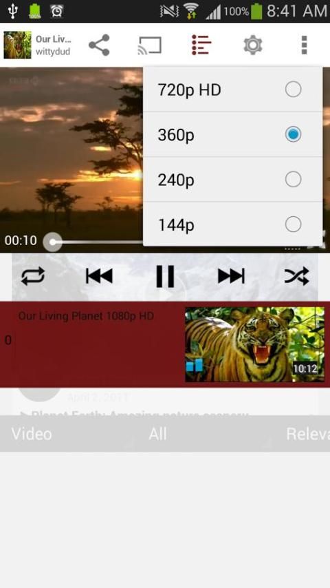You can also choose to visualize your videos in fullscreen mode or minimize the playing video to the notification tray so you can listen to the audio in the background – great for listening music or podcasts from YouTube while you're on the run!