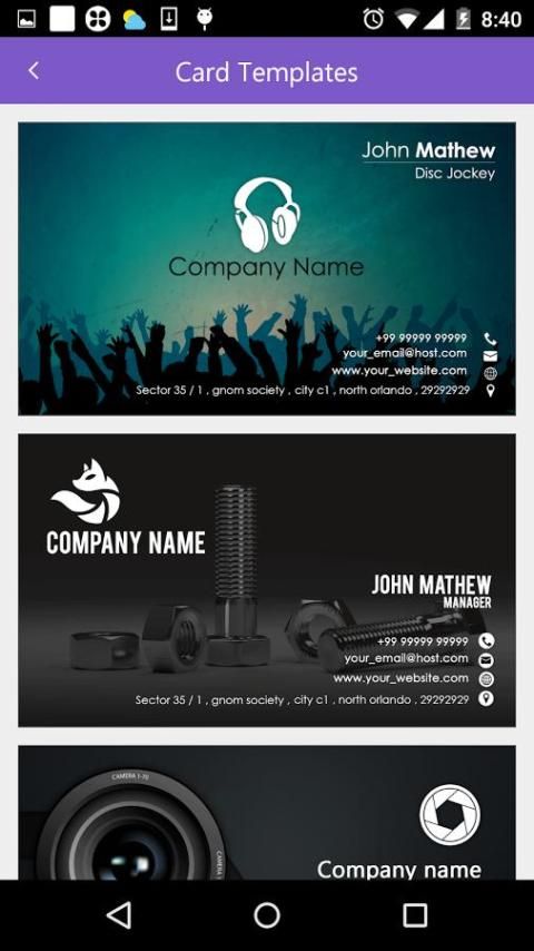 2. يمكن للمستخدم استخدام قالب لإنشاء بطاقة زيارة شخصية.