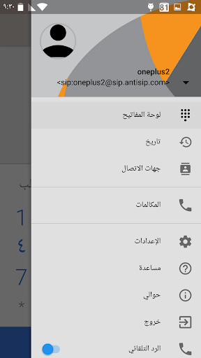 "VoIP by Antisip" يمكن استخدامها مع أي مزود SIP وهو بسيط جدا لتكوينه. تحتاج فقط إلى إدخال المجال وتسجيل الدخول وكلمة المرور لمزود VoIP الخاص بك.