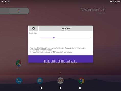 Simple, small, free app to boost your speaker or headphone sound volume. Useful for movies, audio books and music.