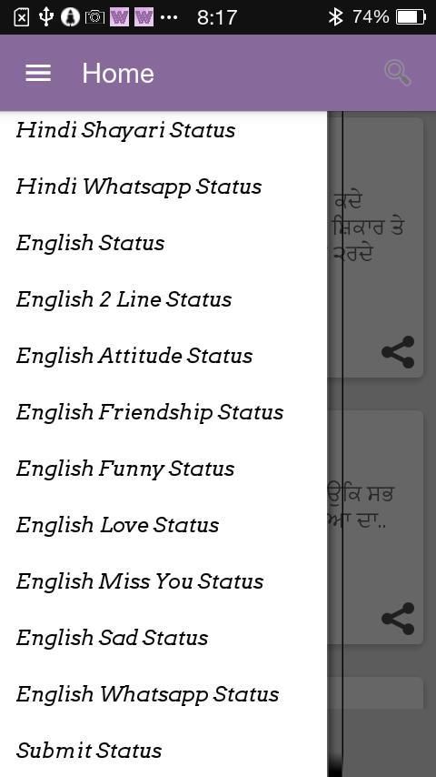 wahstatus هو وتقدم التطبيق للحصول على مركز البنجابية، والوضع الهندية والانكليزية الوضع، والوضع من قبل الأشخاص الذين يستخدمون موقعنا www.wahstatus.com أو عن طريق هذا التطبيق. يمكنك أيضا مشاركة حالتك معنا.