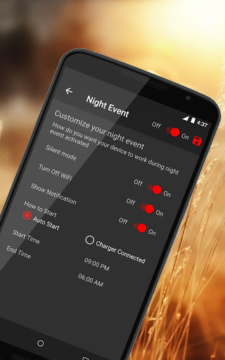 فإنه يمكن البدء التلقائي في وقت محدد أو عند شحن الجهاز ليلا