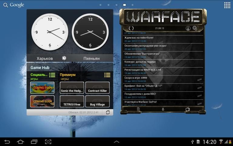 هذا هو القطعة على سطح المكتب الذي يعرض آر إس إس للأنباء، قائمة من أشرطة الفيديو، وتقييم للاعبين والعشائر من Warface الموقع الرسمي. يجب أن يتم تثبيت التطبيق في داخل البطاقة.