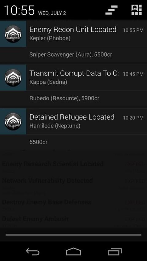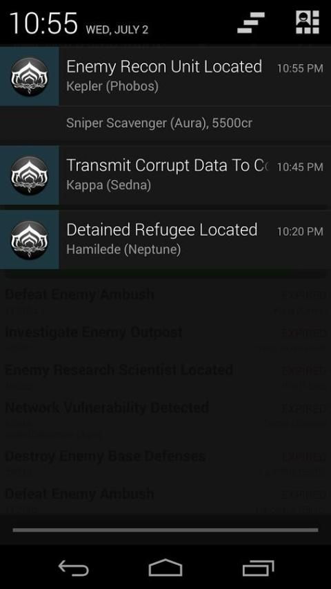 دفع التنبيهات لWarframe، وتهدف إلى تقديم إخطارات بالمعلومات بدلا من مجرد "تنبيهات الجديد".