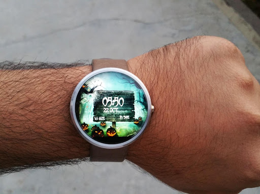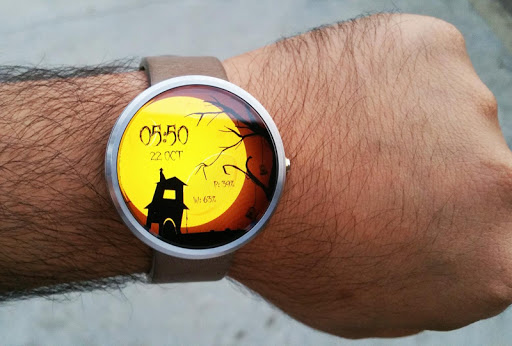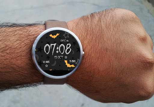 2. اضغط لفترة طويلة على ساعتك واختر "Halloween Spooky Watch Face" كواجهة ساعتك، أو حدد وجه الساعة باستخدام تطبيق Android Wear.