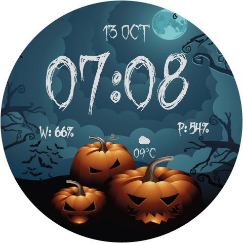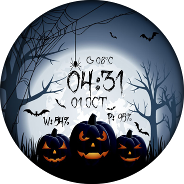 ★★ Halloween Interactive Watch Face هو تصميم ووتش مستوحاة من هالوين وجهات ووتش مع 18 سمات هالوين الفريدة، وهذا هو وجهك ساعة شهر أكتوبر. هالوين عصبي على معصمك ★★