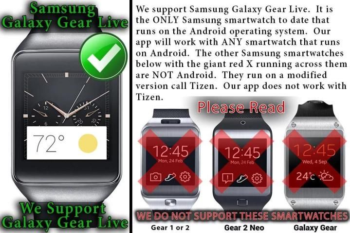 - We support Samsung Gear Live, Moto 360, LG G, LG G R, Urbane, Huawei Watch, Sony Smartwatch 3 & ASUS Zen watches (Android Wear watches)