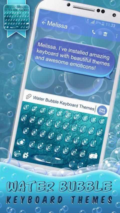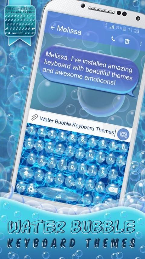 تركيب ▶ فقاعة ماء المفاتيح ثيم ◀ مجانا وتجربة العالم باستخدام خطابات لوحة المفاتيح رهيبة للرسائل الفورية من قبل نفسك. أيضا، العديد من المواضيع لامعة في معرض لدينا، والرموز لطيف، ومعالجة بسيطة جدا يمكن أن تجتذب فقط الاهتمام وجعل لكم الحصول على هذا التطبيق في اسرع وقت ممكن! ابتكار بعض الرسائل الحلوة أثناء الكتابة على لوحة مفاتيح جديدة! تثبيت أفضل "تطبيق لوحة المفاتيح" والتمتع نظرة الهاتف رائع! اسمحوا لنا لوحة المفاتيح مع المشاعر تغيير شكل الهاتف الذكي الخاص بك إلى الأبد!