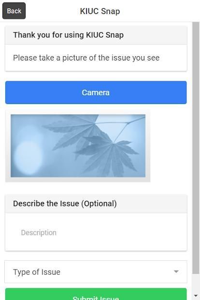 This app is meant for KIUC members to assist KIUC in finding potential electrical faults and problems. As a KIUC member or employee, you can take a picture of an issue and our app will submit this picture along with your geographical location to KIUC employees to be analyzed. This way, members can participate in the process of disaster recovery and they can be an active part of the company. We hope that you will use this tool to assist us.