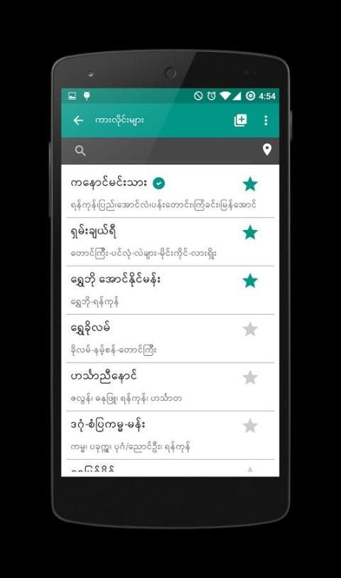 * ကား လိုင္း အ မည္ (သို 4) မိမိ သြား လို သ ည့ ္ ၿ မိဳ 5 နာ မည္ အား ရိုက္ ထ ည့ ္ လိုက္ 0 ုံ ျ ဖ င့ ္ ကား လိုင္း တစ္ ခုခ် င ္ း စီ ၏ ခရီး စဥ္، လိပ္ စာႏ ွ င့ ္ ဖုန္း နံ ပါတ္ တို 4 ကို အခ် ိန္ တို အ တြင္း ၾ က ည့ ္ ရွု နိုင္ သည္.