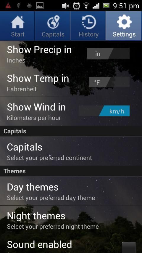 - التبديل بين وحدات درجة الحرارة والأمطار والرياح المختلفة