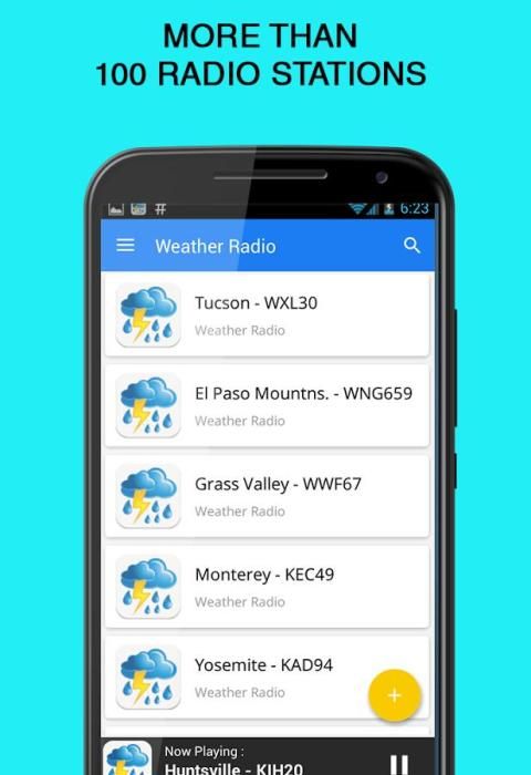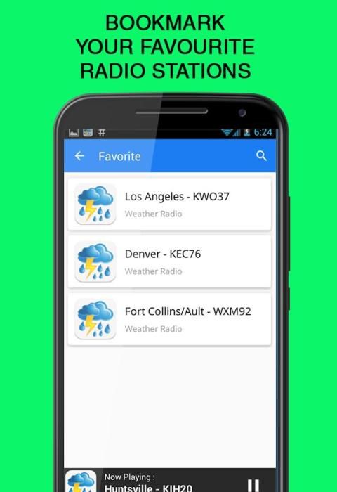 لأولئك منكم الذين هم في الولايات المتحدة، والحصول على معلومات الطقس الهامة من هذه التطبيقات. في هذا التطبيق، وهناك أكثر من 100 محطة الراديو التي يمكن الاستماع للطقس. تقريبا جميع المعلومات الطقس المدن الهامة في الولايات المتحدة والعالم يمكن أن تسمع من هذا التطبيق.