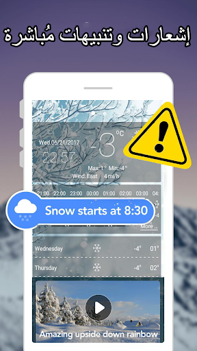 كن أول من يعلم في حال حدوث عواصف، عواصف رملية، عواصف ثلجية، تغيرات الطقس الحادة أو أي تغير رئيسي في الطقس في منطقتك عن طريق خدمة الإشعارات والتنبيهات.