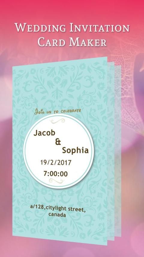 مع Wedding بطاقة دعوة Maker التطبيق يمكنك إنشاء بطاقة دعوة الزفاف على الفور. إضافة لك معلومات عن زفاف مثل الاسم، تاريخ، مكان ومن ثم كل ما عليك القيام به هو اختيار تصميم بطاقة الاختيار المفضل لديك وبعد ذلك سوف يتم نقلك إلى خياراتنا تحرير أداة مثل النص، وإطارات، والملصقات ونقلت أفضل جذابة الخ