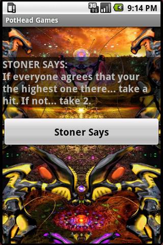 This fun new app features a whole bunch of weed party games to give you entertainment while you are getting stoned on your good stash of marijuana. There are games for both someone flying solo and for the group of friends. Note these are not actual video games. These are party games for anywhere from 1 to many players to give you an activity to do to get highBackgrounds that allow you to trip out while you play the games.Games such as:Stoner Says: Game similar to simon says, but you can guess what the outcome of this game is.Kings Joint: Ever played Kings Cup? Well this game is similar, but gets you high rather than drunk.Trippy: Simply a way to trip out while you are taking hits. Stare closelyWithin the app the games with red names are not currently available to the free version. Upgrade for only 99 cents to unlock them and receive a lot more games soon.Currently this version features 7 games. And more are coming with future updates. These current games will also be modified to add content and make them even more fun.If you have any ideas or tasksobjectives that you think would be a great addition to these games feel free to shoot me an email at FALLACYSTUDIOS@GMAIL.COMIf you experience any problems at all or are not liking the app please send me an email rather than give bad ratings. I will do my best to resolve any issues.The permissions used are for putting up the ads only.Happy TokingSpecial Thanks to http:trippypsychart.blogspot.com for the public domain background art.TAGS: smoke, weed, bud, marijuana, stoner, stoners, handbook, toke, high, blunt, joint, trip, trippy, fun, game, games, party, bakedc2011 All Rights Reserved. Fallacy Studios