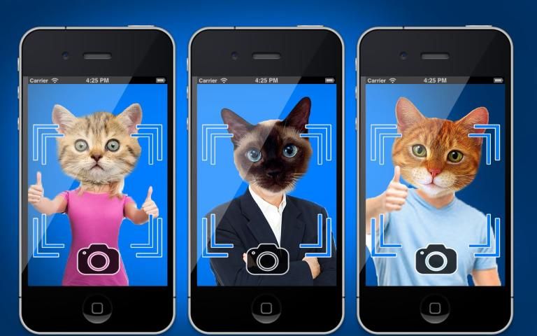 ما كنت القط والوجه الماسح التطبيق مسح وجهك وسوف تظهر لك مع رأس القط. جميع القطط الحب، والنظر في كل منها.