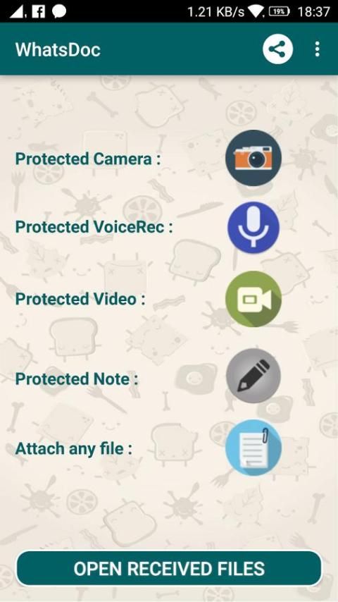 إذا يتلقى المستخدم صورة، فيديو، مذكرة، قوات الدفاع الشعبي، باور بوينت، إكسل، ملف صوتي، WhatsDoc: فك تشفير لهم وفتح لهم لك.