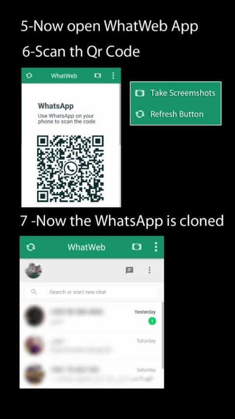 1. وسوف المفتوحة Whatscan عن التطبيق Whatsweb على الهاتف 2ND الخاص بك وتظهر رمز الاستجابة السريعة بالنسبة لك لمسح.