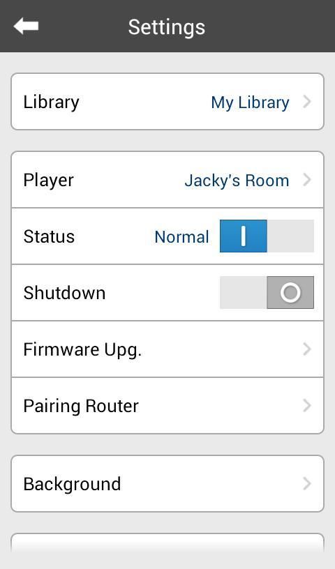 واي فاي الموسيقى يمكن تشغيلها على جهاز الروبوت. بعد متصلة واي فاي، والموسيقى على جهاز الروبوت وDLNA / UPnP الموجودة على الخادم يمكن تشغيلها على الجهاز التي تدعم DLNA / UPnP ل، على سبيل المثال DSPPA، Auxdio، سوني، وبيونير جهاز الموسيقى الذكية.