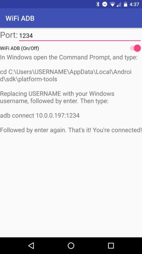 يسمح هذا التطبيق للاتصال واي فاي ADB، مع رقم منفذ محدد مخصص. التطبيق يعمل بسلاسة من خلال الاستفادة من المواضيع الأساسية لتكوين اتصال بنك التنمية الآسيوي. هل هذا التطبيق يتطلب ROOT.