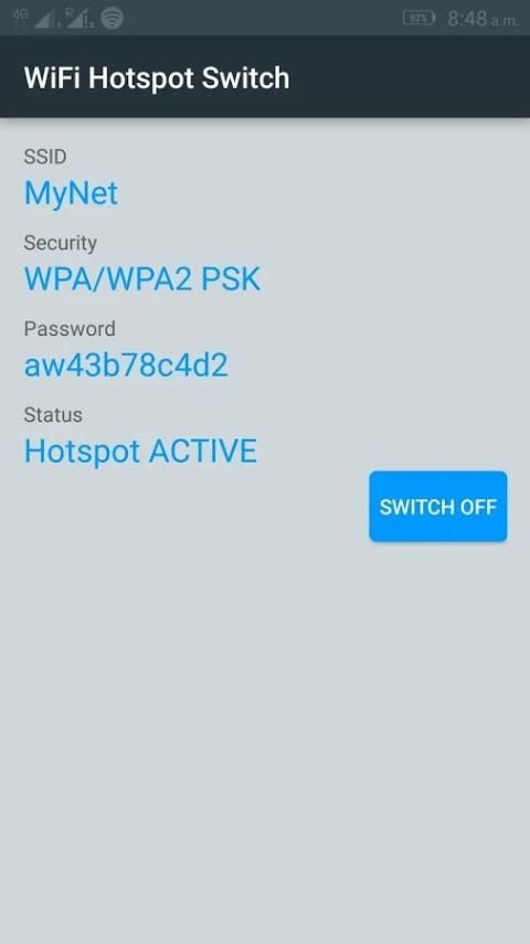 - قم بتشغيل واي فاي نقطة ساخنة التبديل مع لمسة واحدة.