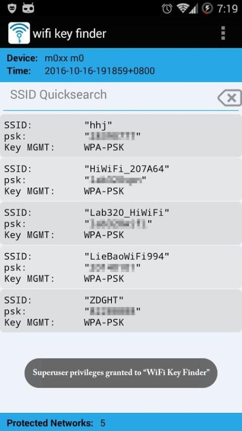 وواي فاي مفتاح مكتشف تلقائيا تجد كلمة السر الخاصة بك واي فاي فقدت في لحظة. وهو يسرد كلمة السر واي فاي الخاص بك، والتي لا يمكن أن يرى كلمة السر واي فاي في الإعداد الافتراضي الجهاز. يمكنك نسخ كلمة المرور إلى الحافظة أو التصدير كلمات السر لملف.