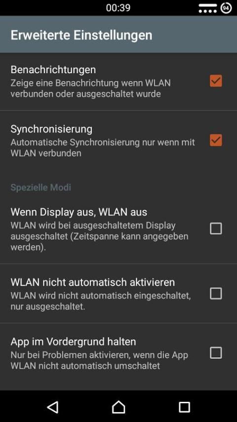 السمة الرئيسية للبرنامج واي فاي محدد هو التحويل التلقائي وإيقاف وظيفة لاسلكية من الهاتف الذكي. إذا تم العثور على أي شبكة المعروف القريبة، حيث تم تشغيل ميزة WLAN قبالة، لا تزال على خلاف ذلك في هذا. لم يتم تنفيذ ذلك عن طريق تحديد المواقع للجهاز (كما تفعل العديد من التطبيقات الأخرى). هذه النتائج في أوقات تعمل لفترة أطول من ذلك بكثير، كما يتم حماية البطارية.