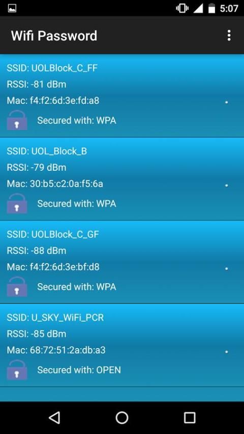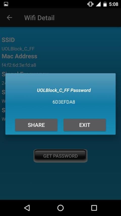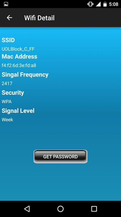 هذا التطبيق تفحص الماسح الضوئي شبكة القريب، وسوف يقدم كل شبكات واي فاي التي هي في النطاق. انقر على أي شبكة سترى تفاصيل تلك الشبكة. ثم انقر على كلمة المرور الحصول عليه سوف اعطيكم كلمة مرور عشوائية.