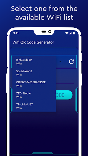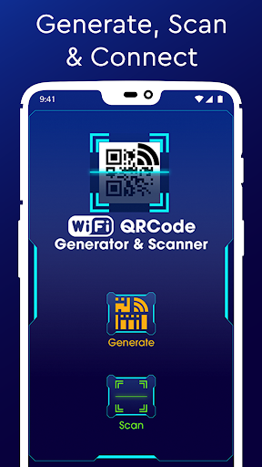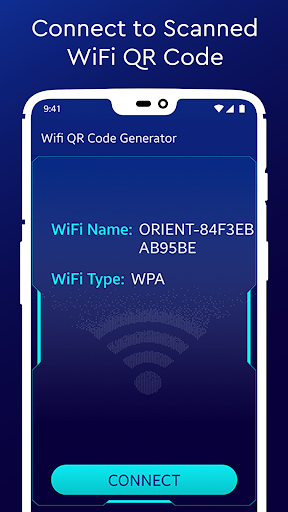 With beautiful and futuristic design WiFi QR Code Reader allows you to connect easily to a WiFi network by scanning a pre-generated QR Code. Just put your mobile camera to the QR code and automatically the app will Connect to the scanned network.