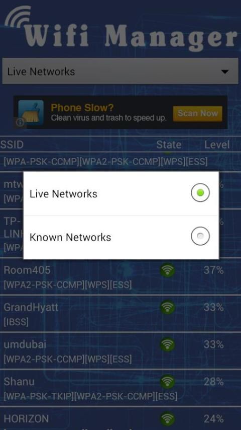 هذا التطبيق، فاي فاي مدير ومحلل يساعدك على العثور عليها، وربط وإدارة شبكات Wi-Fi على الجهاز. فقط اضغط على شبكة تكوينها بالفعل، انقر فوق اتصال وأو الاستفادة من اتصال متوفرة، أدخل كلمة المرور وبدء. وهذا التطبيق يساعد أيضا تقوم بعرض شبكات واي فاي مرتبة على أساس قوة الإشارة والاتصال إلى أفضل شبكة.