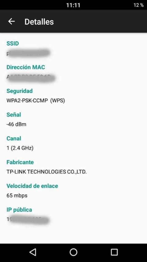 في تفاصيل كل واي فاي، ويمكن الكشف عن SSID وعنوان MAC لجهاز التوجيه، ونوع من الأمن، قوة الإشارة، قناة والشركة المصنعة جهاز التوجيه. أيضا في الوقت الذي نحن اتصال واي فاي، ويمكننا أن نرى سرعة الارتباط، الجمهور الملكية الفكرية والملكية الفكرية الخاصة.